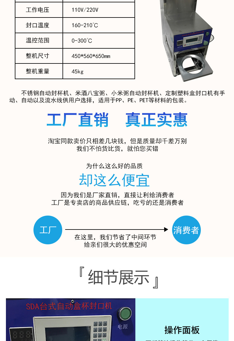 不锈钢全自动片膜碗型封杯机